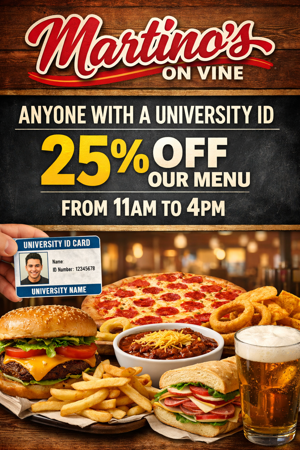 The stromboli was huge and amazing.. Love the wings.. The pizza had great crust.. With the beer special and the food it is great. Martino's is a must stop.